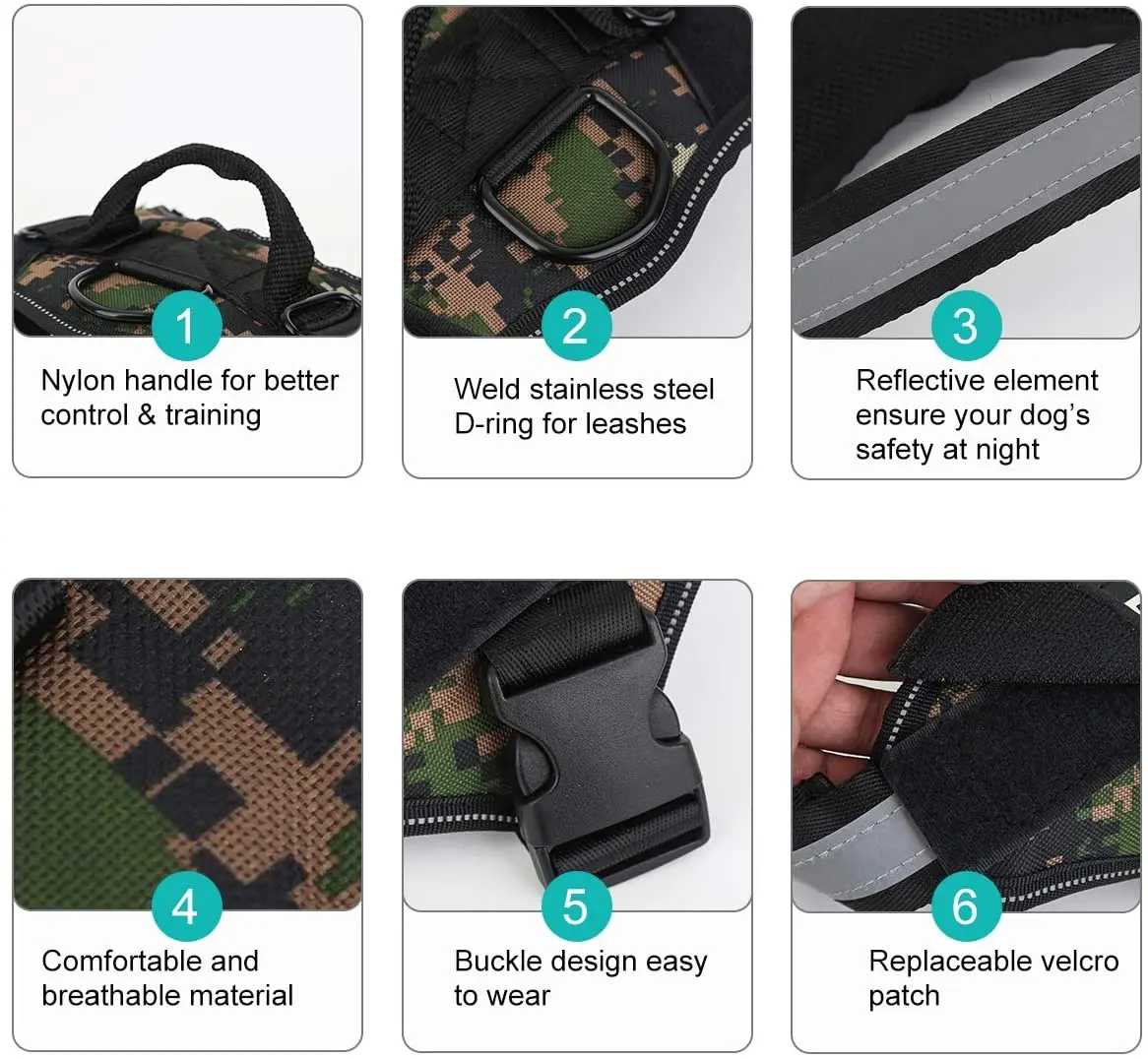 Reflective & Breathable: Your dog will be highly visible and safe at night thanks to the luminous straps around them. This pet harness is also very light and breathable. It will also keep your pet ventilated and cool.